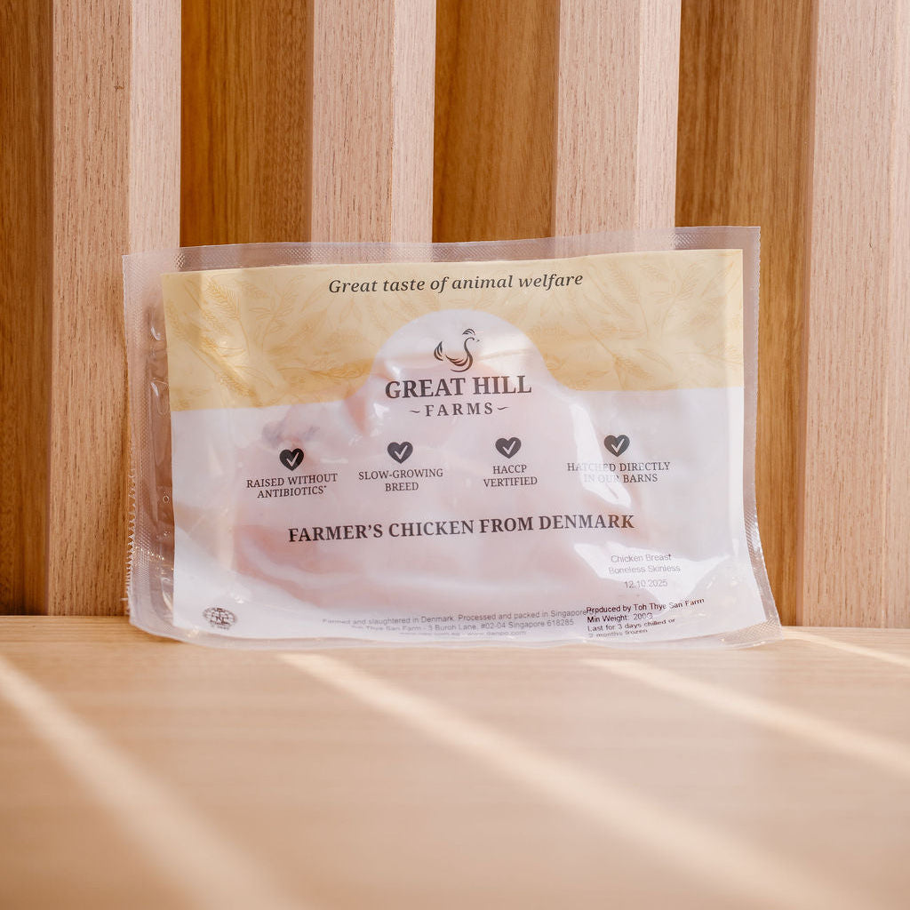 Lean, tender boneless skinless chicken breasts from Great Hill Farms, suitable for healthy meals, stir-fries, or batch cooking.