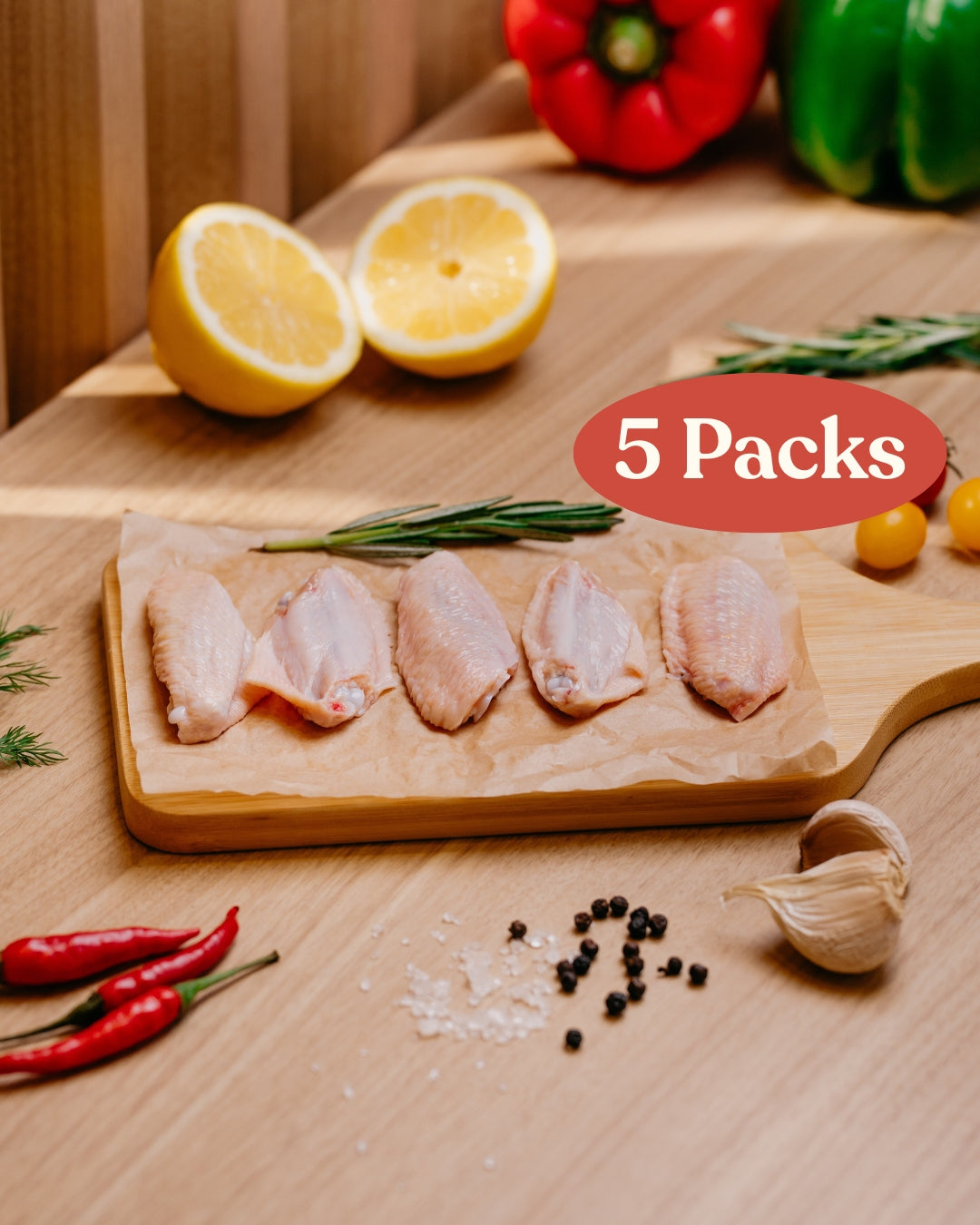 The GG French Poulet Middlewing Bundle consists of 5 packs of our GG French Poulet middlewings, at a discounted price of only $46.90 (U.P. $54.50).